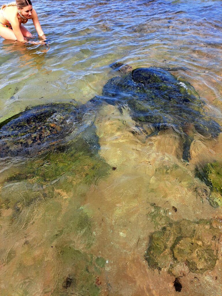 We spend the day on the beach. We visit the turtles before it gets too crazy.
