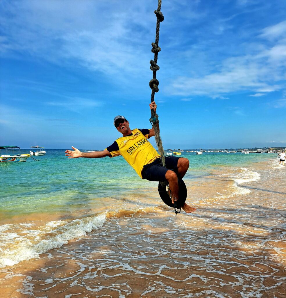 I go for a swim in Hikkaduwa beach. Goggles on.