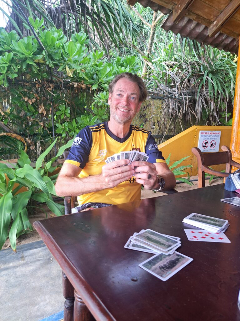 We get to Hikkaduwa and our hotel. Its just off the train track and like a little oasis. Its raining but people play in the pool and it looks perfect.