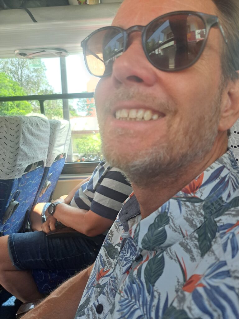 Its a 4.5 hour journey so I catch up on this blog. Pete is slowly going crazy next to me. He’s in front of a big fella on the bus whose knees are in Petes back..